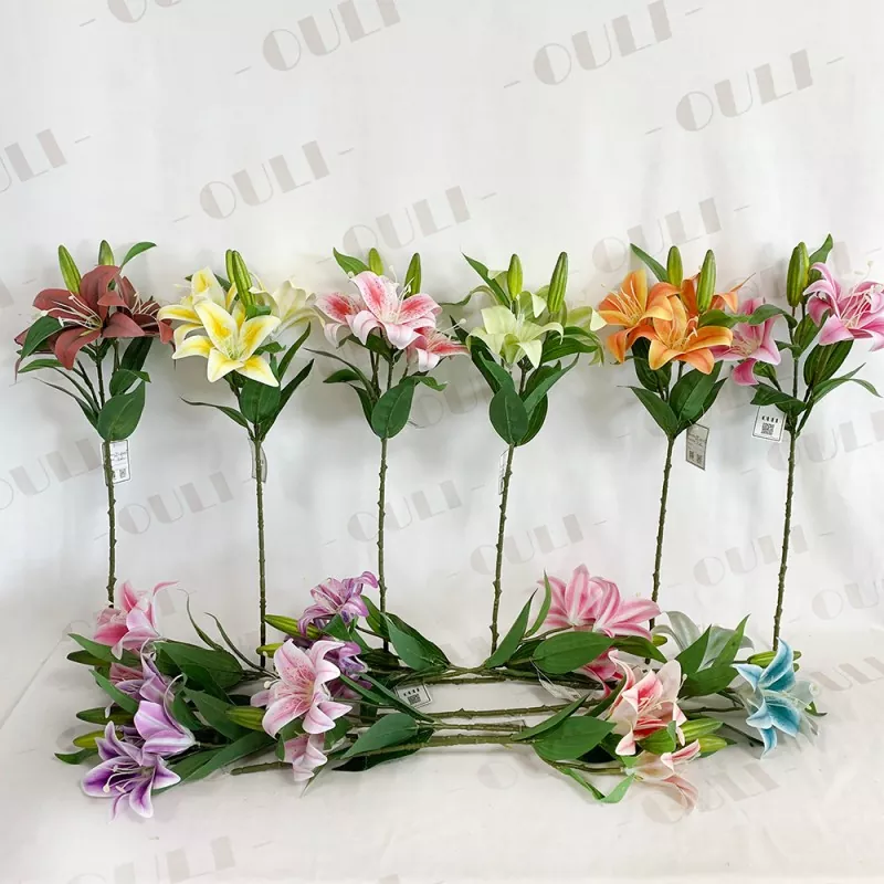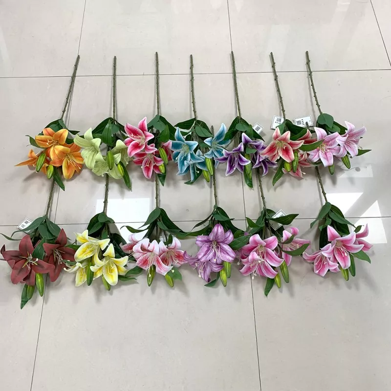 گھر اور شادی کی سجاوٹ کے لئے 57 سینٹی میٹر 3 سر مصنوعی للی پھول پھول