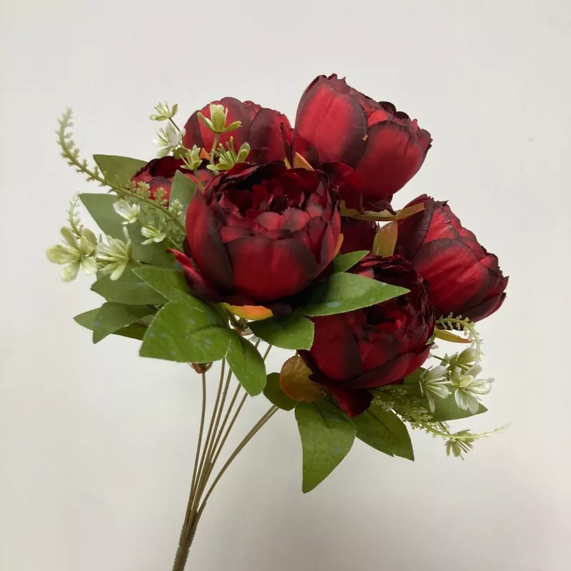 ہر گلدستہ 45 سینٹی میٹر لمبا ہے اور اس میں ریشم مصنوعی پیونی کے سات پھول ہیں ، ہر 10 سینٹی میٹر قطر ، سبز پتے اور دیگر چھوٹے پھولوں کے لہجے سے آراستہ۔